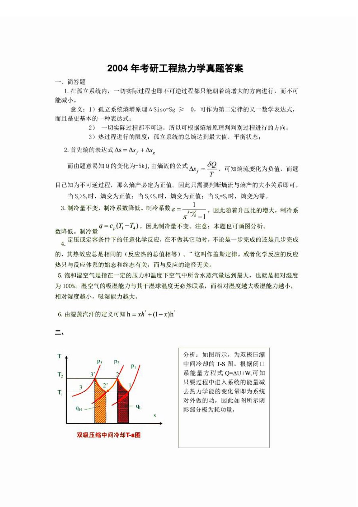 华北电力大学(北京)823热工基础2004年考研真题答案解析