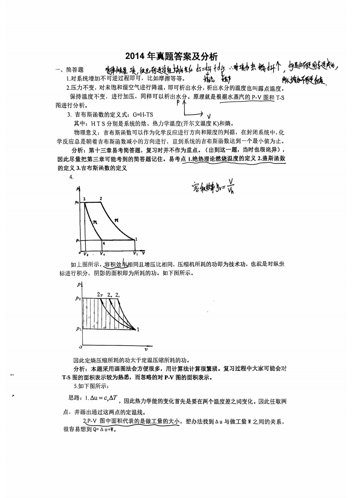 华北电力大学(北京)823热工基础(工程热力学)2014年真题答案