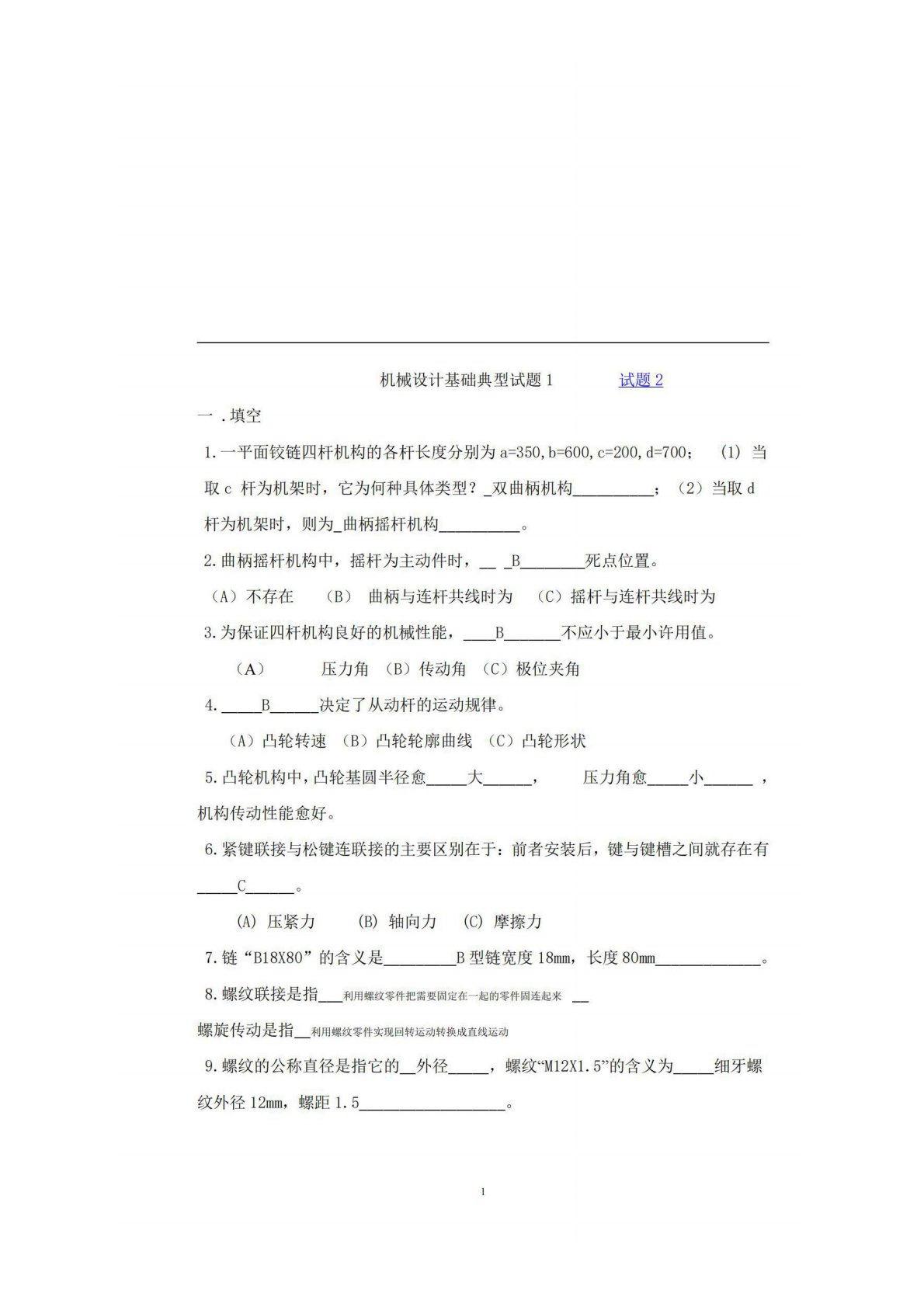 华北电力大学(北京)821机械设计基础2010年基础试题及答案公布