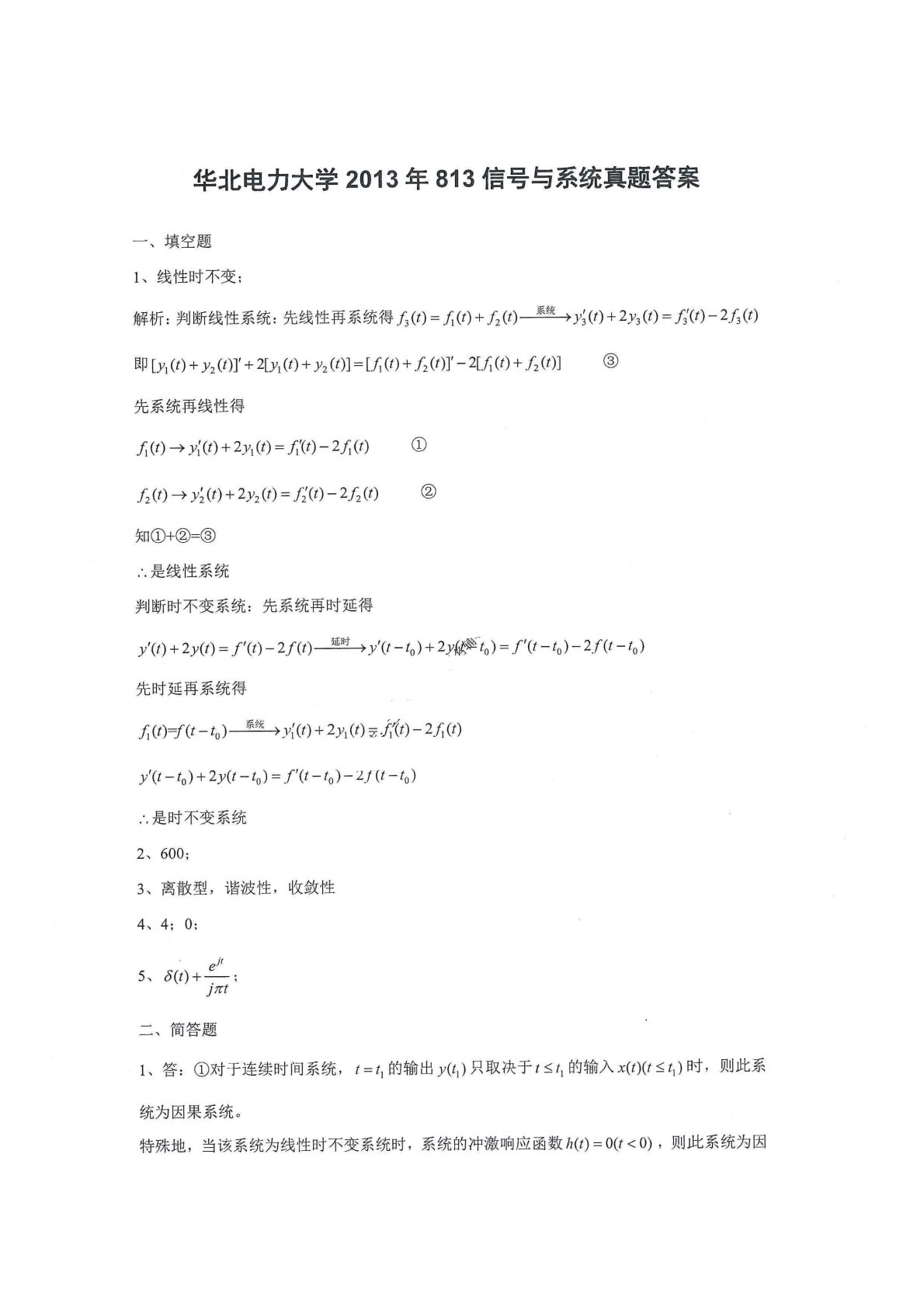 华北电力大学(北京)813信号与系统2013年真题答案