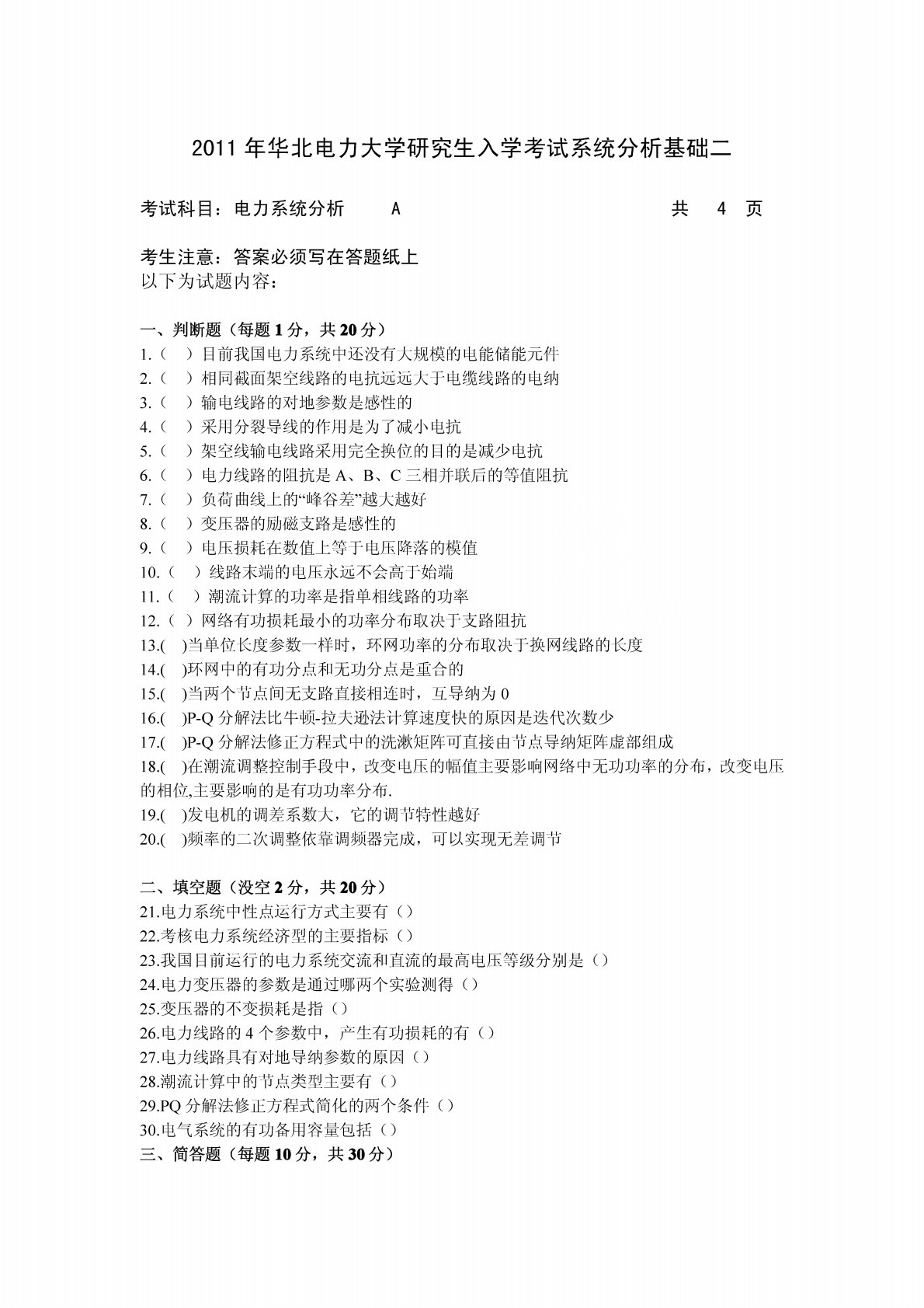 华北电力大学(北京)811电力系统分析基础2011年真题1