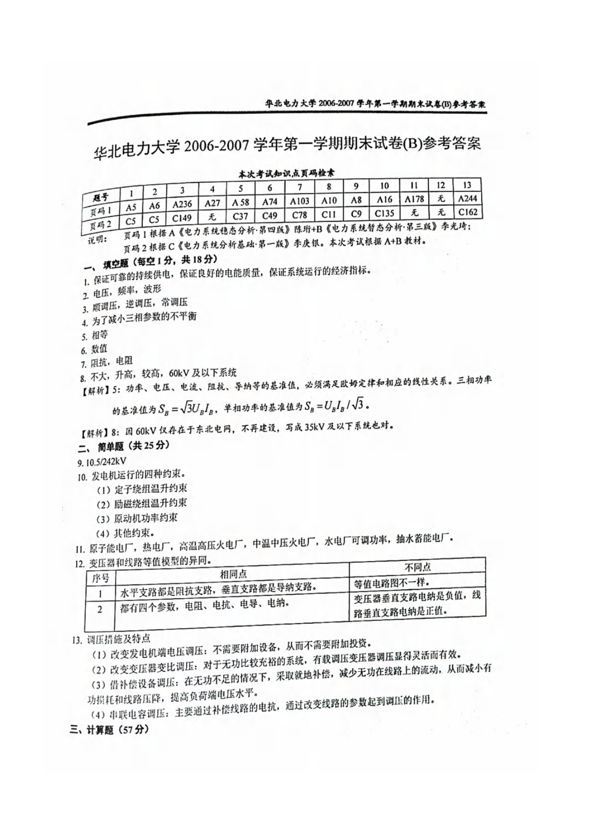华北电力大学(北京)811电力系统分析基础2006年-2007年期末试卷答案B