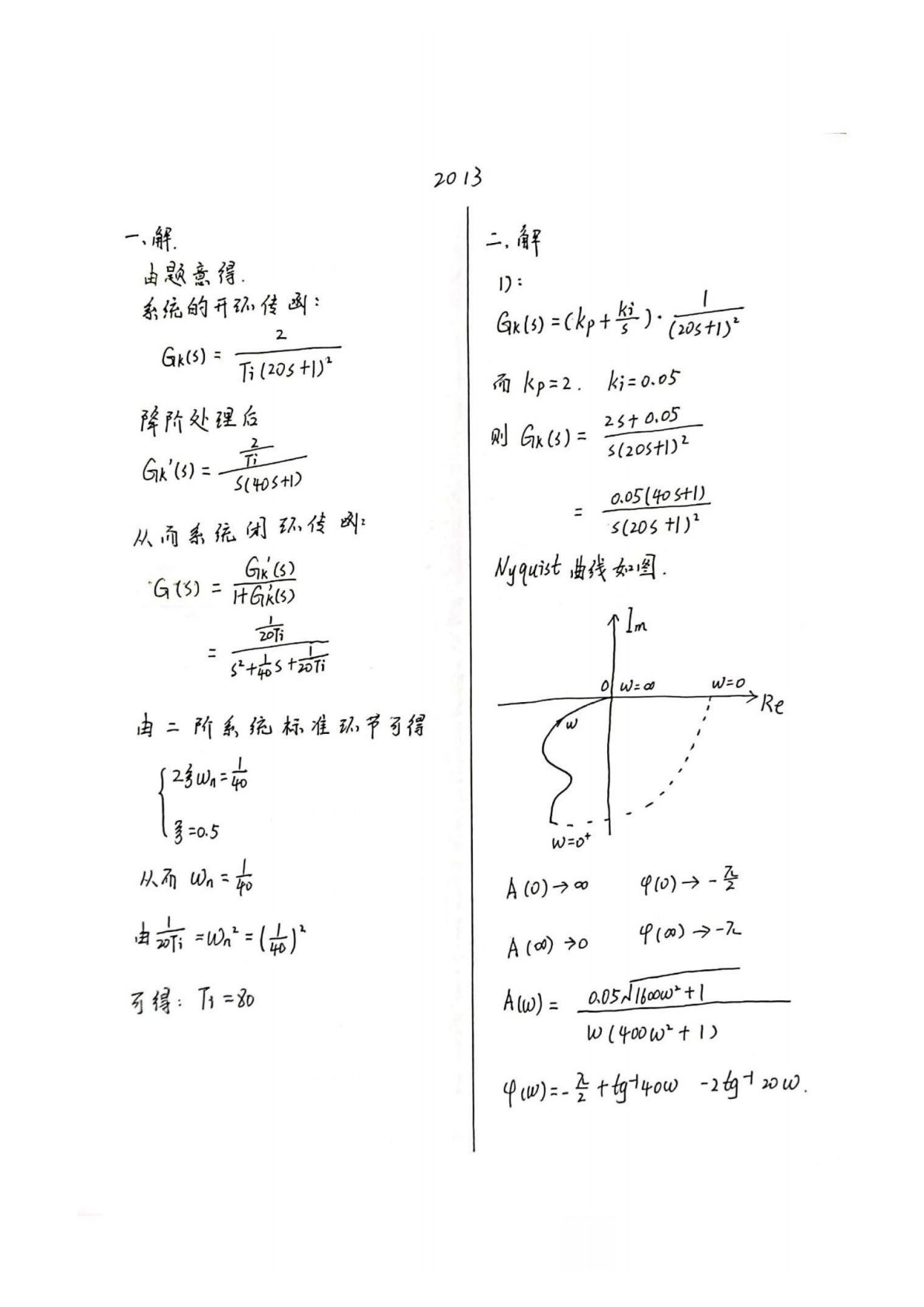 华北电力大学(保定)820自动控制理论二2013年考研真题答案解析
