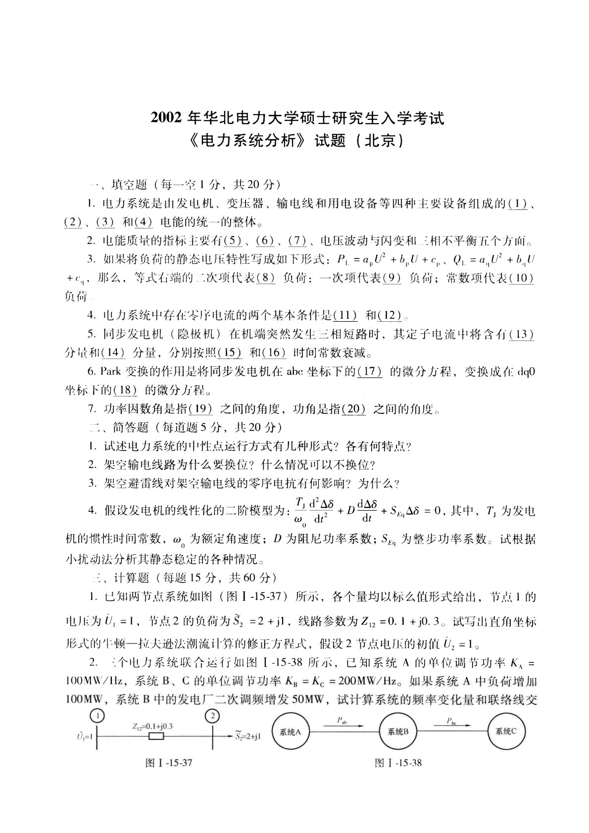 华北电力大学(北京)811电力系统分析基础2002年真题
