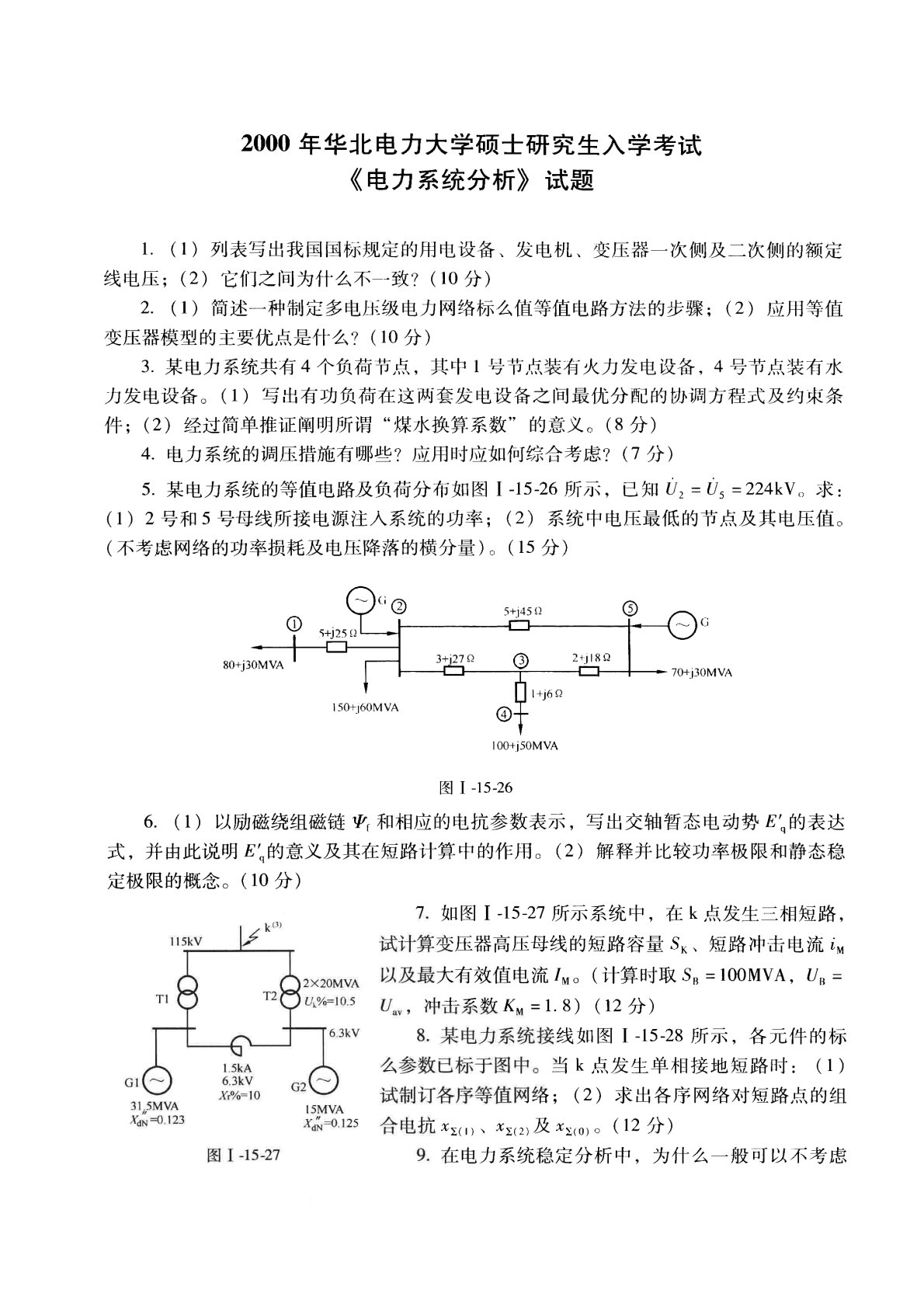 华北电力大学(北京)811电力系统分析基础2000年真题
