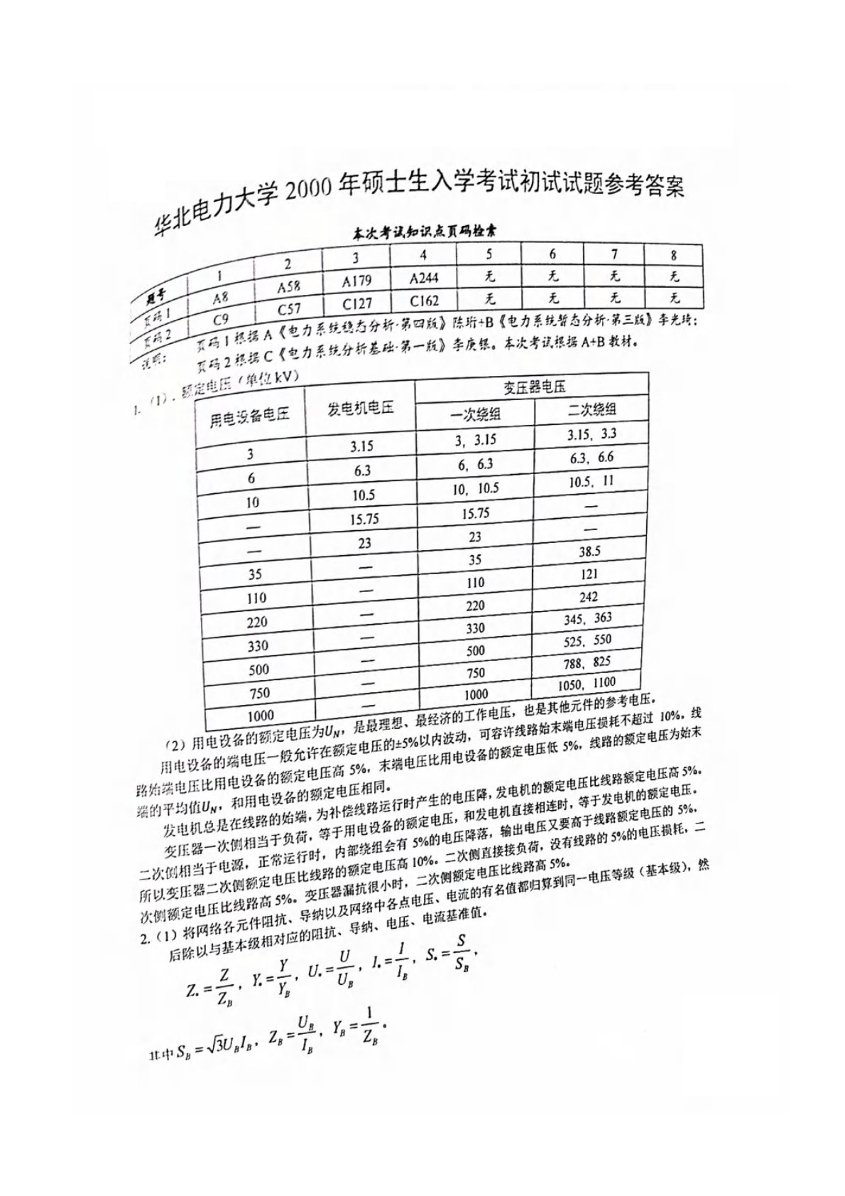 华北电力大学(北京)811电力系统分析基础2000年真题答案