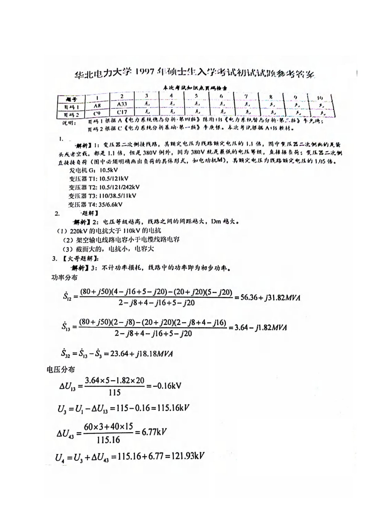 华北电力大学(北京)811电力系统分析基础1997年真题答案