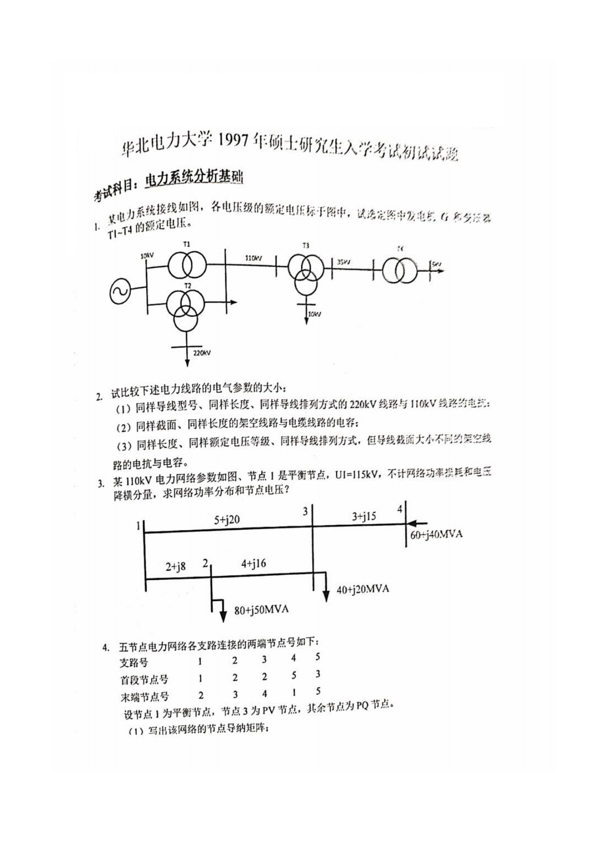 华北电力大学(北京)811电力系统分析基础1997年真题