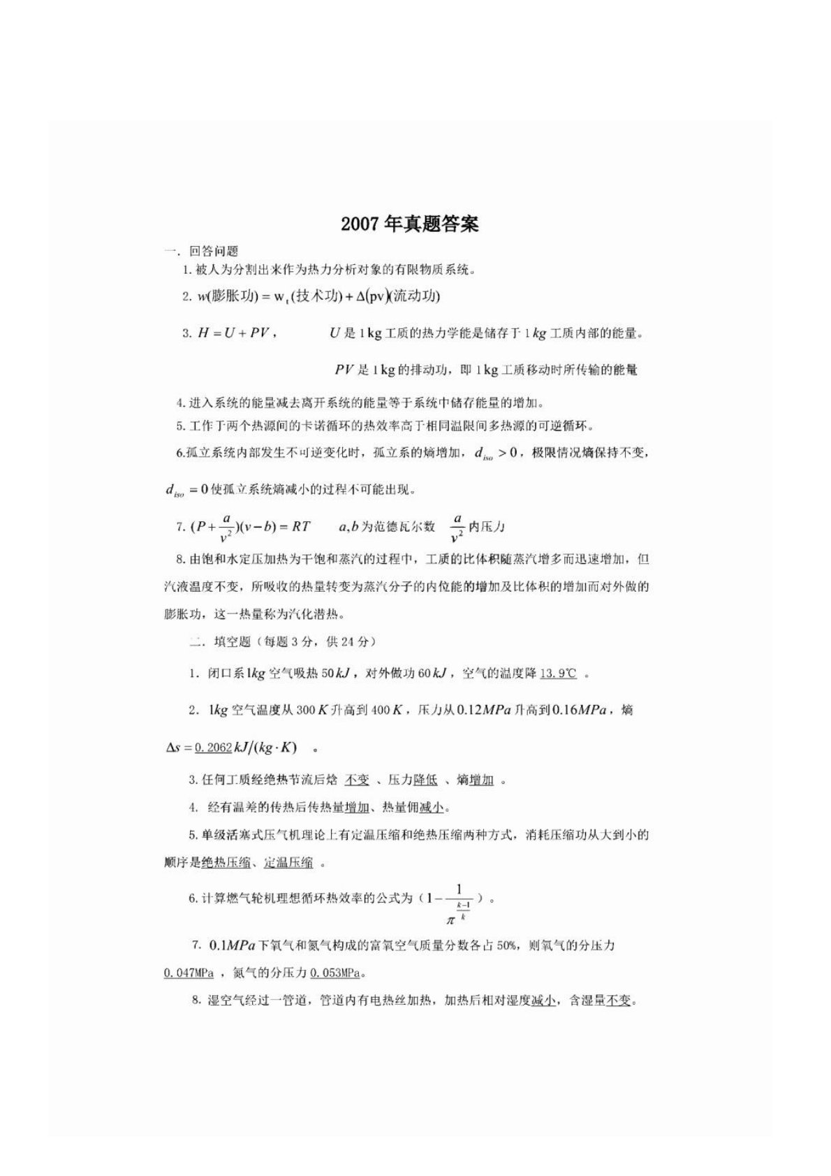华北电力大学(北京)823热工基础2007年考研真题答案解析