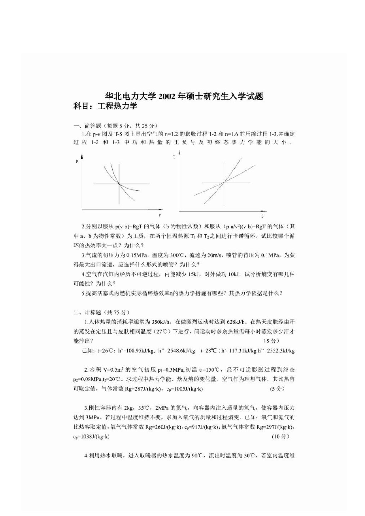 华北电力大学(北京)823热工基础2002年考研真题