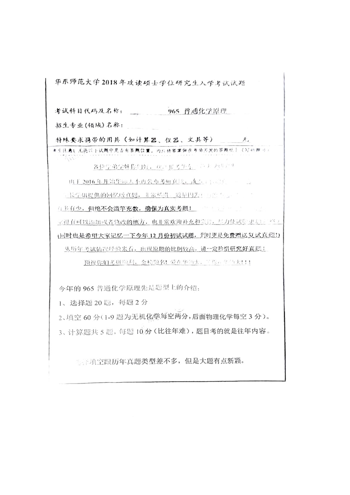 华东师范大学865普通化学原理2018年真题