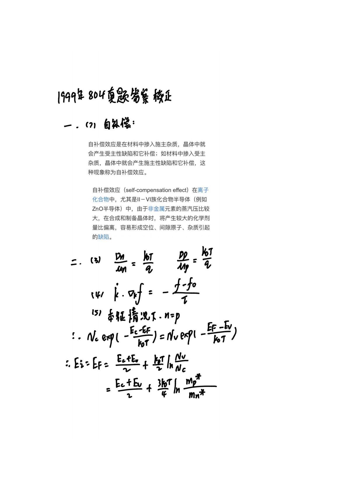 中国科学院大学804半导体物理1999真题答案手写版