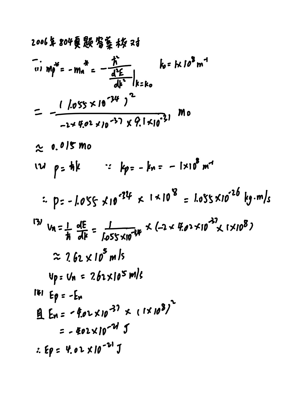 中国科学院大学804半导体物理2006年真题答案校对手写版