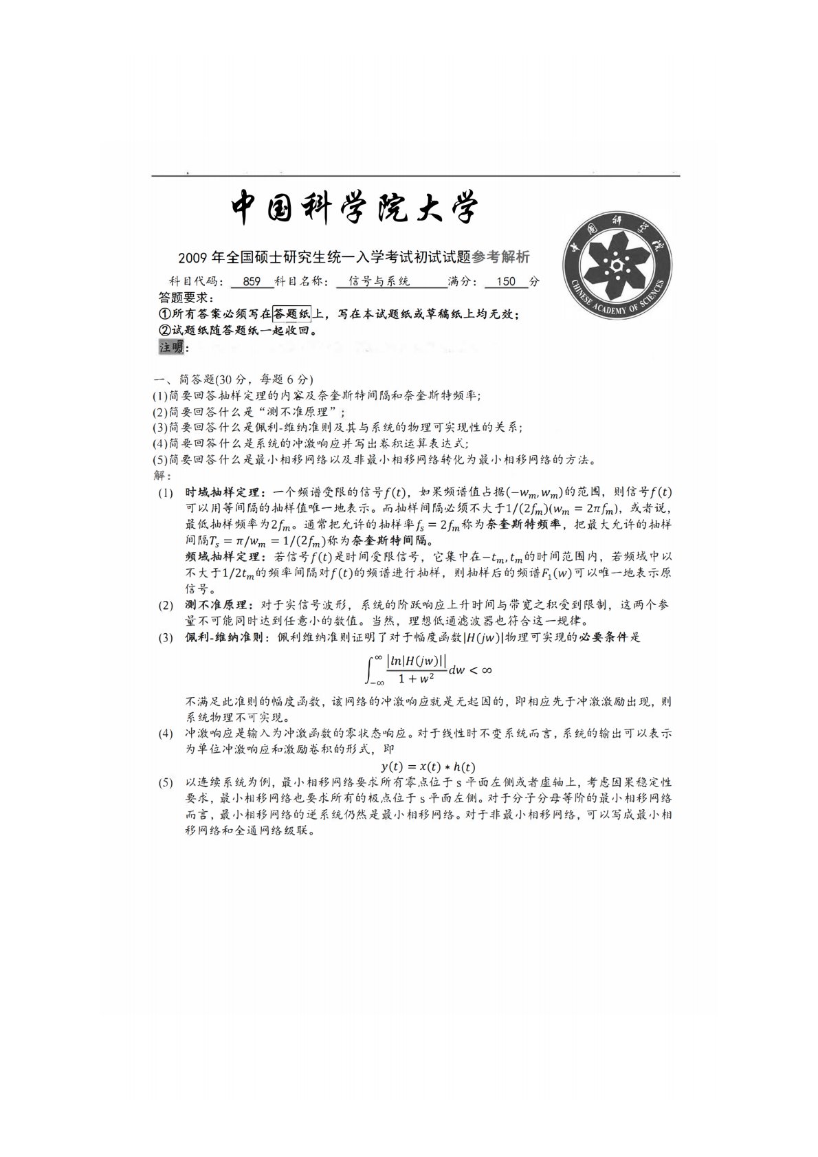 北京工业大学822信息与系统2021年真题答案VIP专享