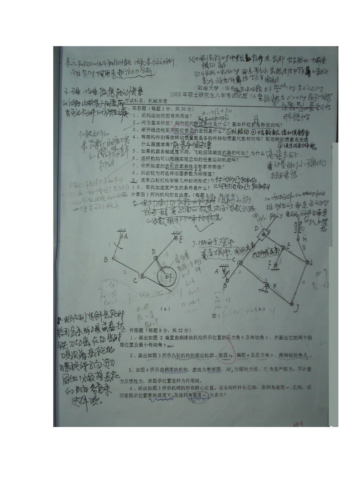 中国石油大学(华东)822机械原理2005年真题
