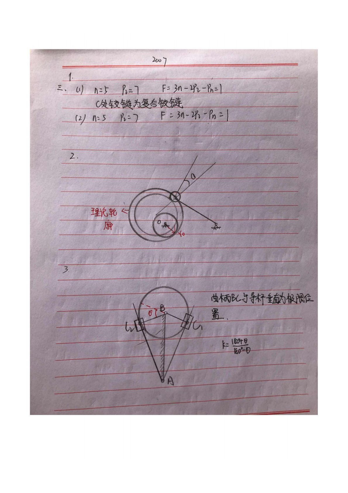 中国石油大学(华东)822机械原理2007年真题答案手写版