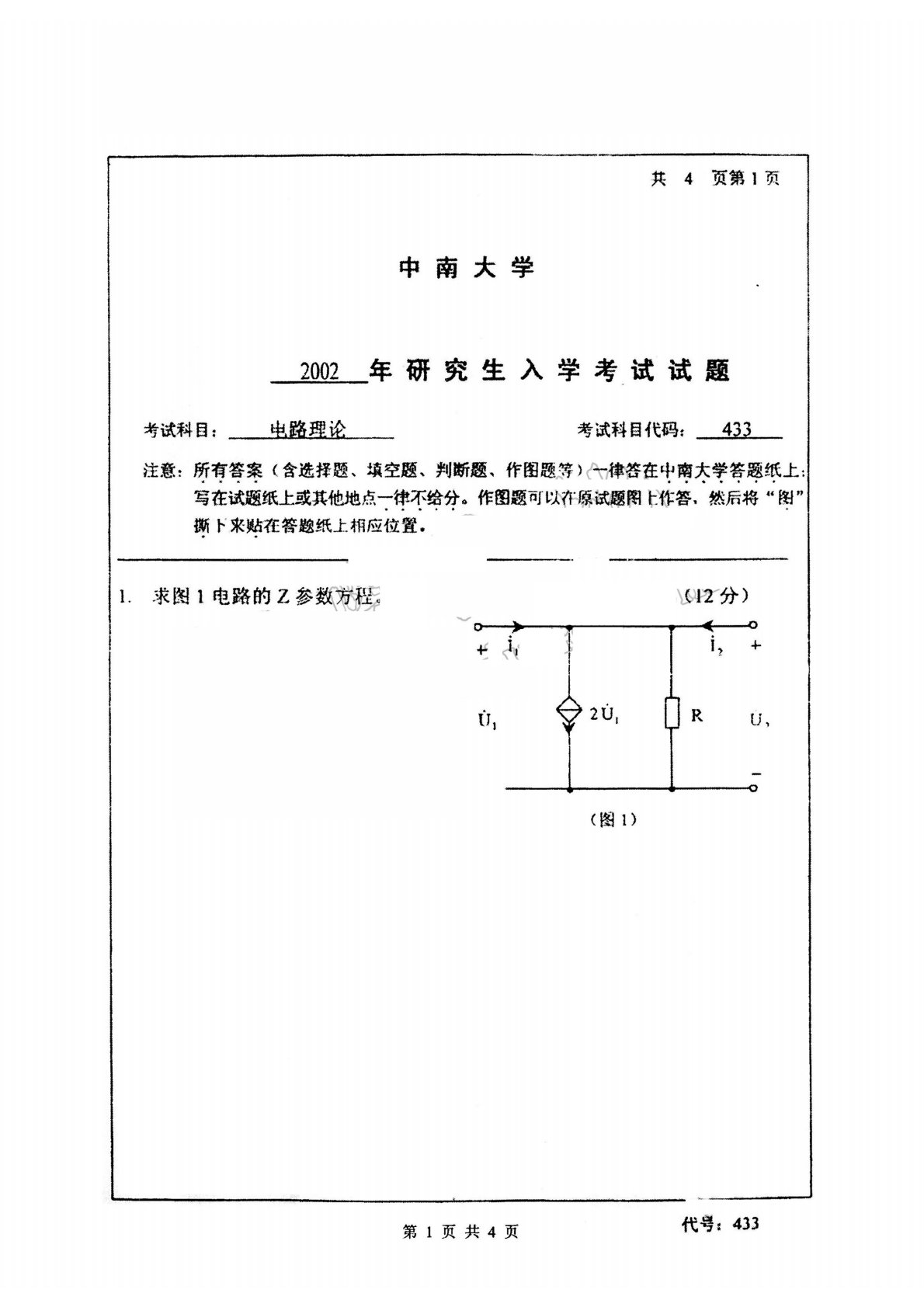 中南大学940电路理论2002年考研真题