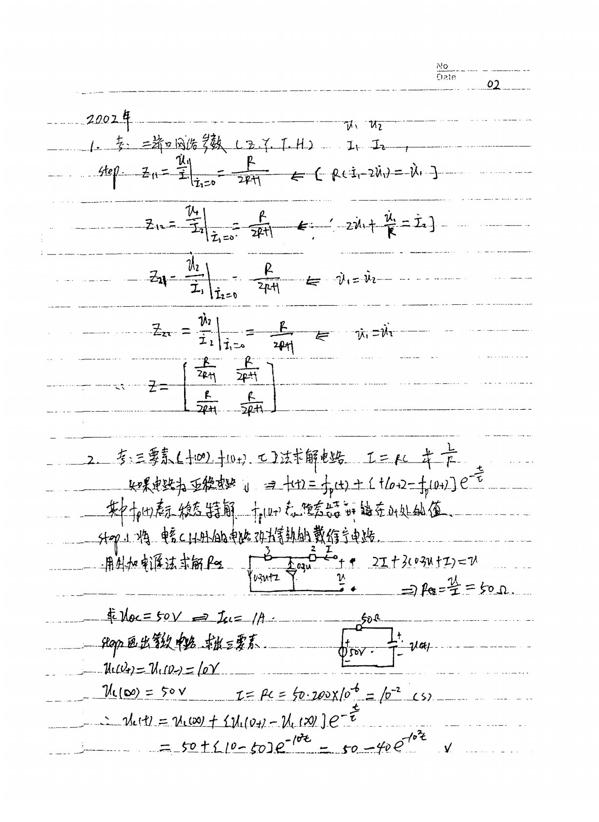 中南大学940电路理论2002年考研真题答案手写版
