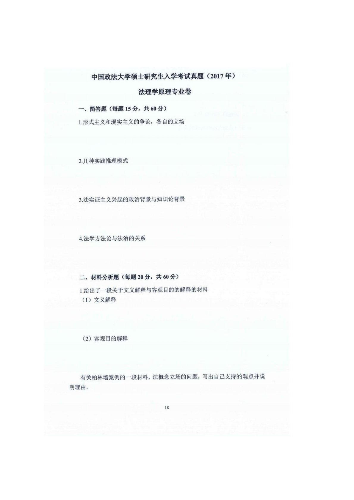 中国政法大学801法理学原理2017年真题
