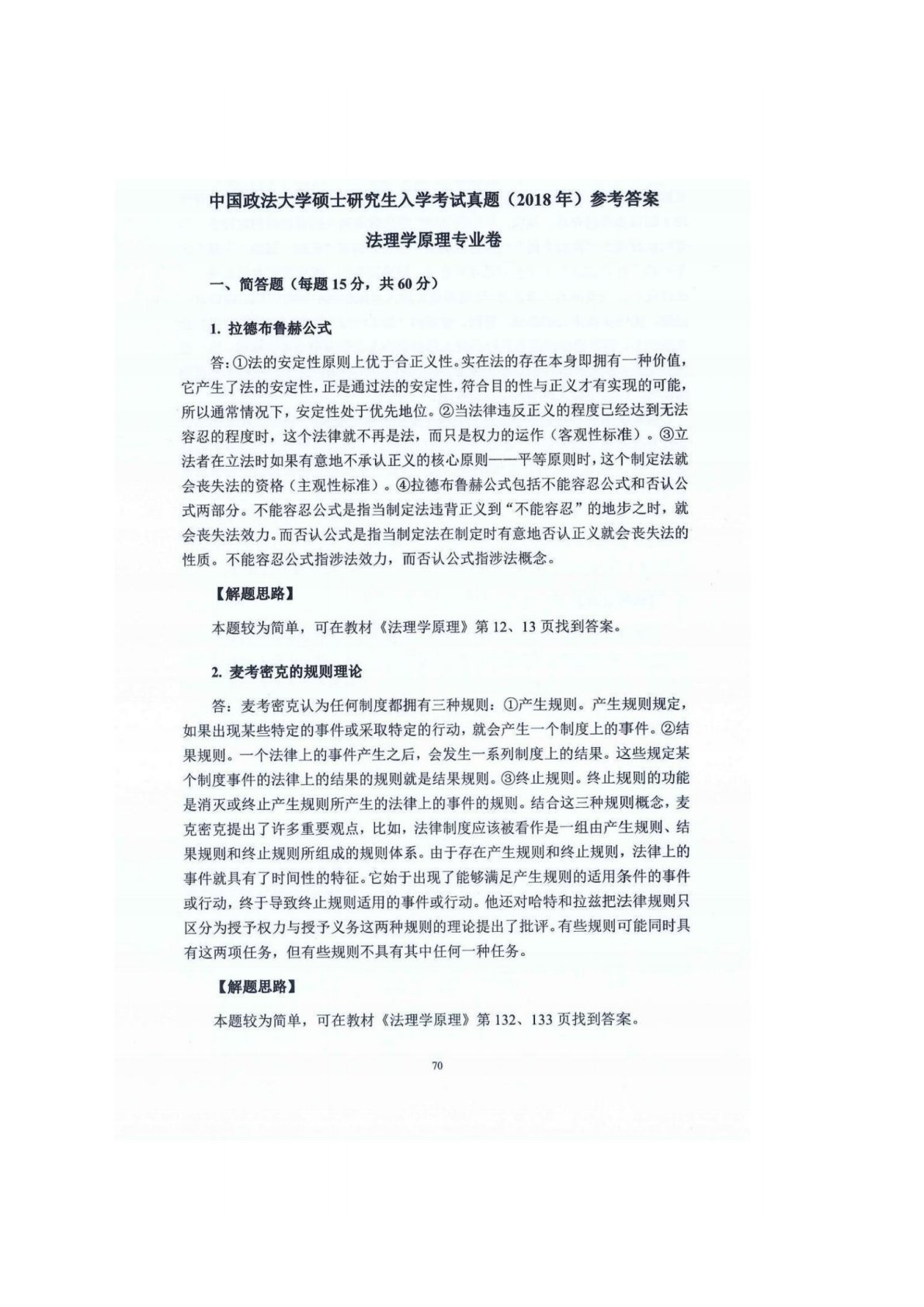 中国政法大学801法理学原理2018年真题答案