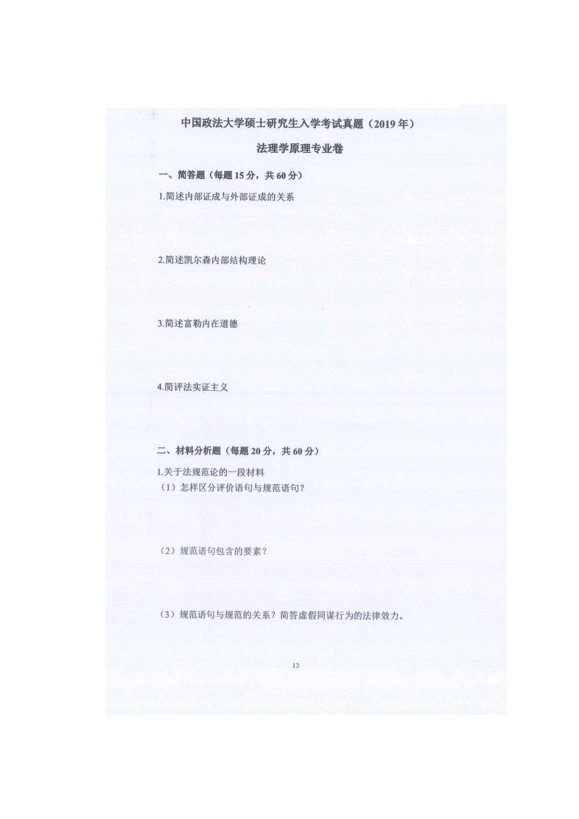 中国政法大学801法理学原理2019年真题