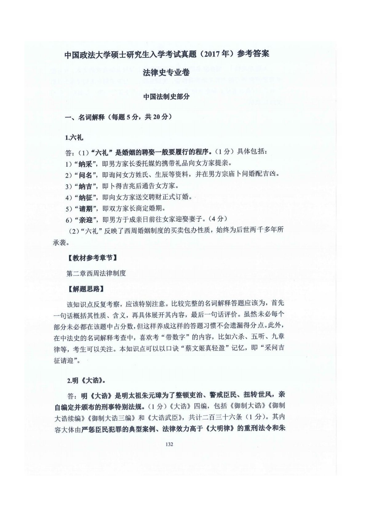 中国政法大学802法律史2017年真题答案