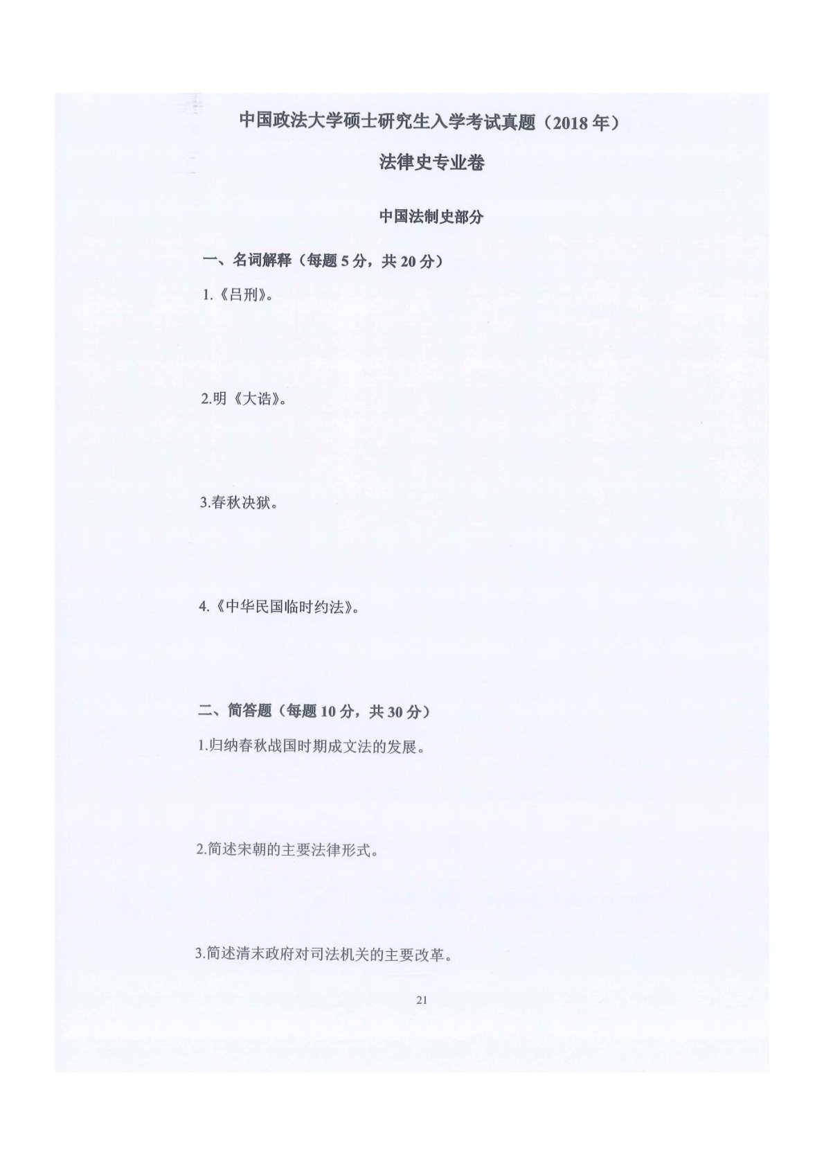 中国政法大学802法律史2018年真题