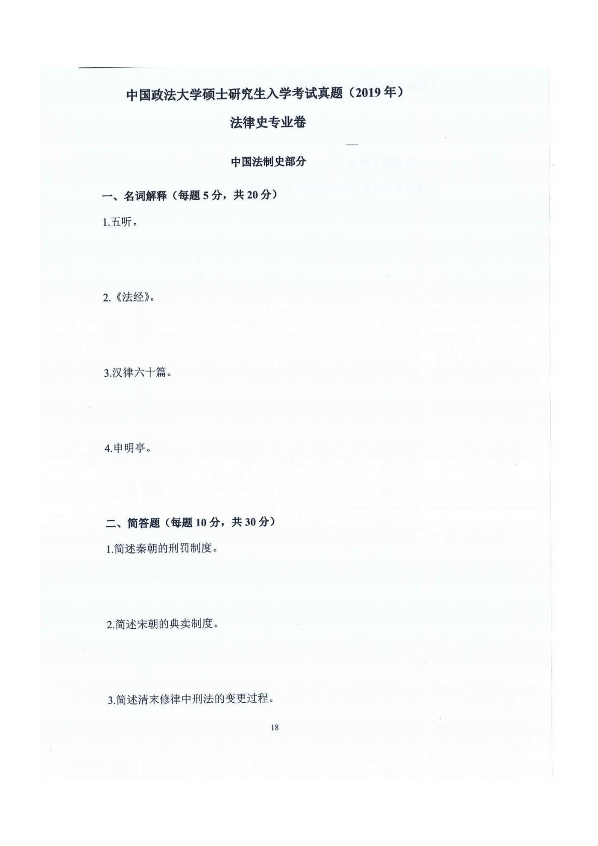 中国政法大学802法律史2019年真题