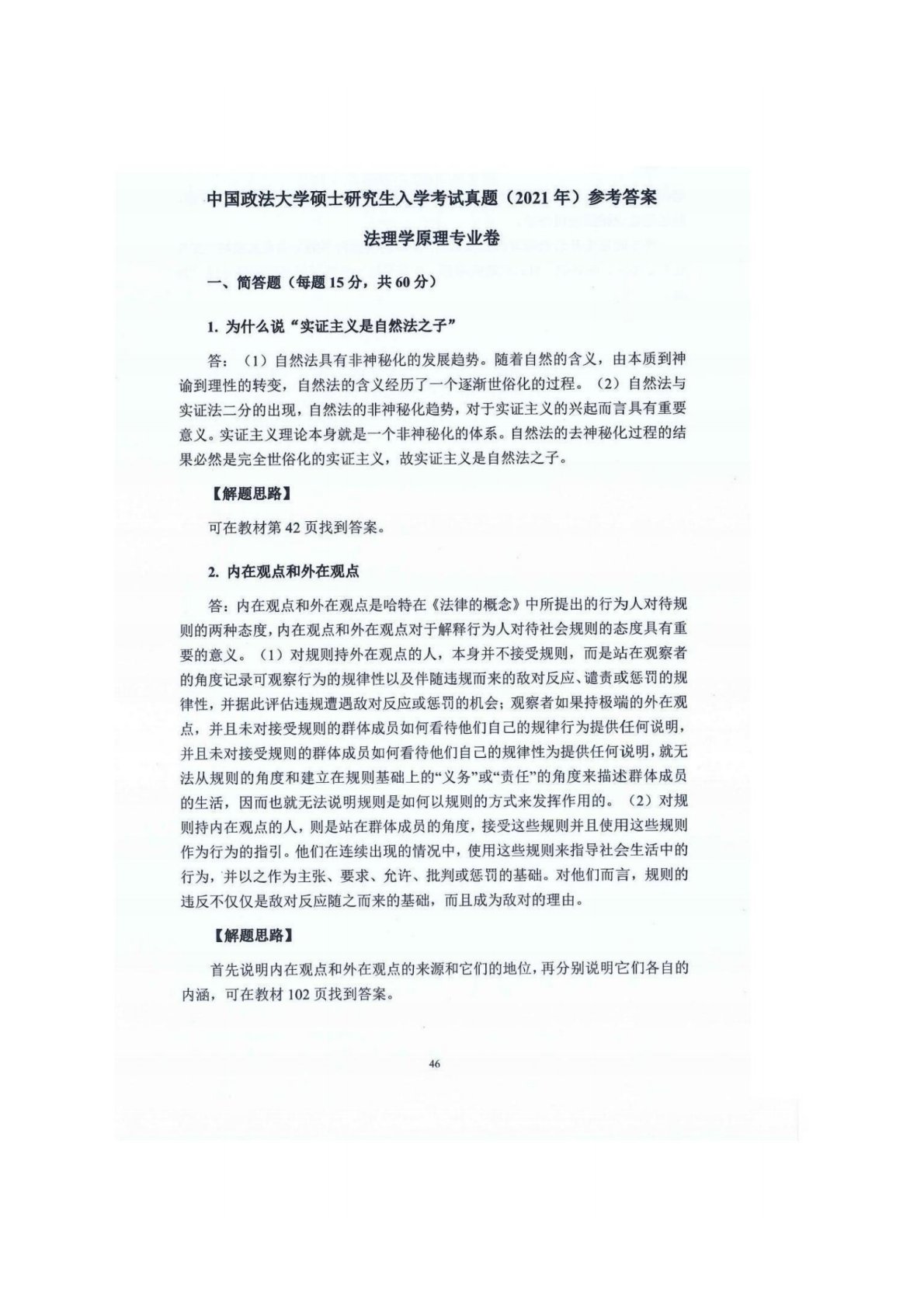 中国政法大学801法理学原理2021年真题答案