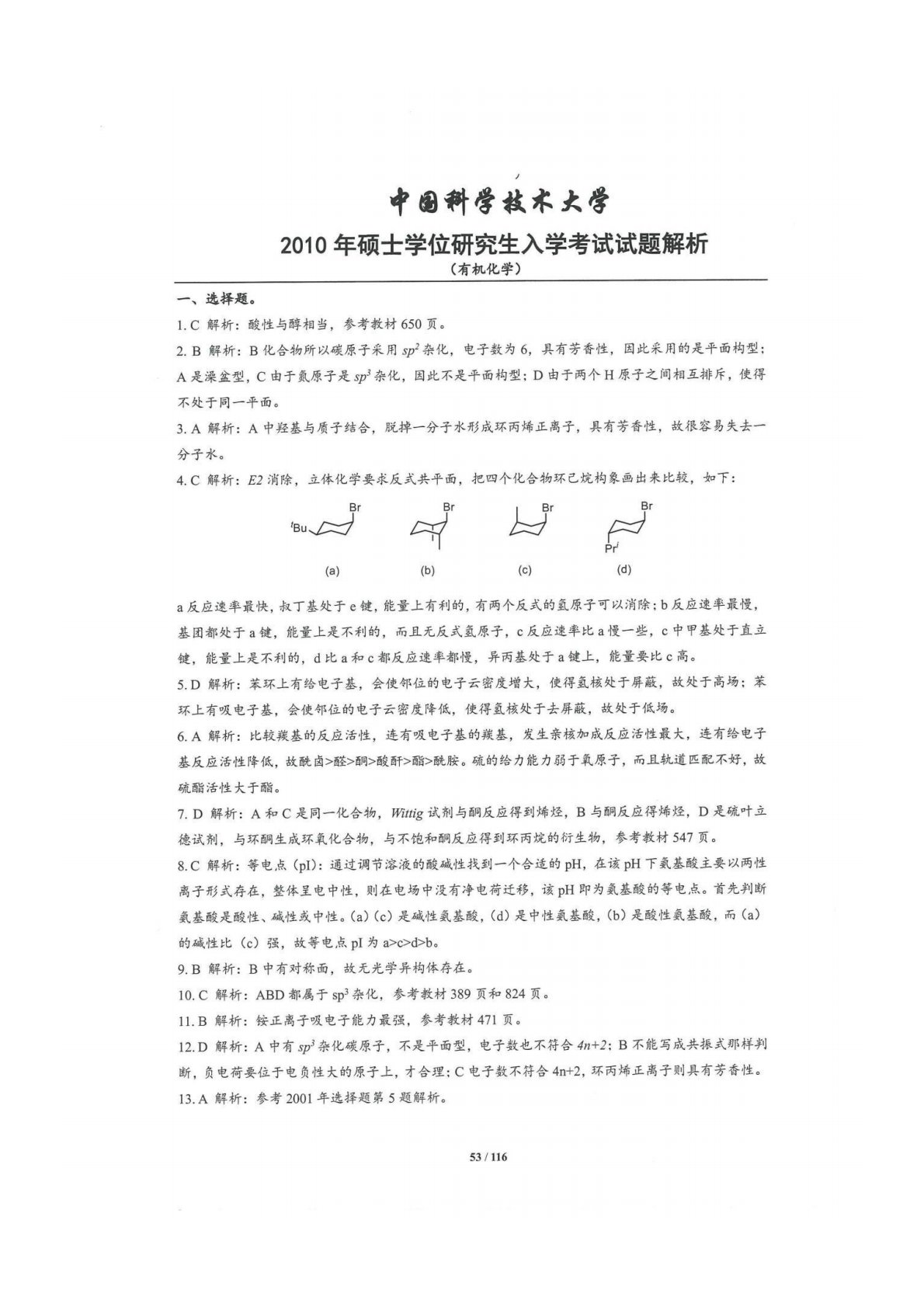 中国科学技术大学854有机化学2010年真题答案