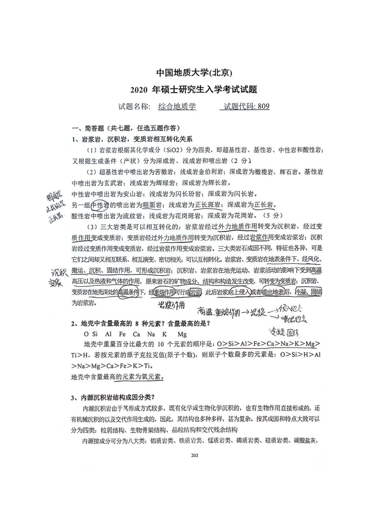 中国地质大学(北京)809综合地质学2020年真题答案