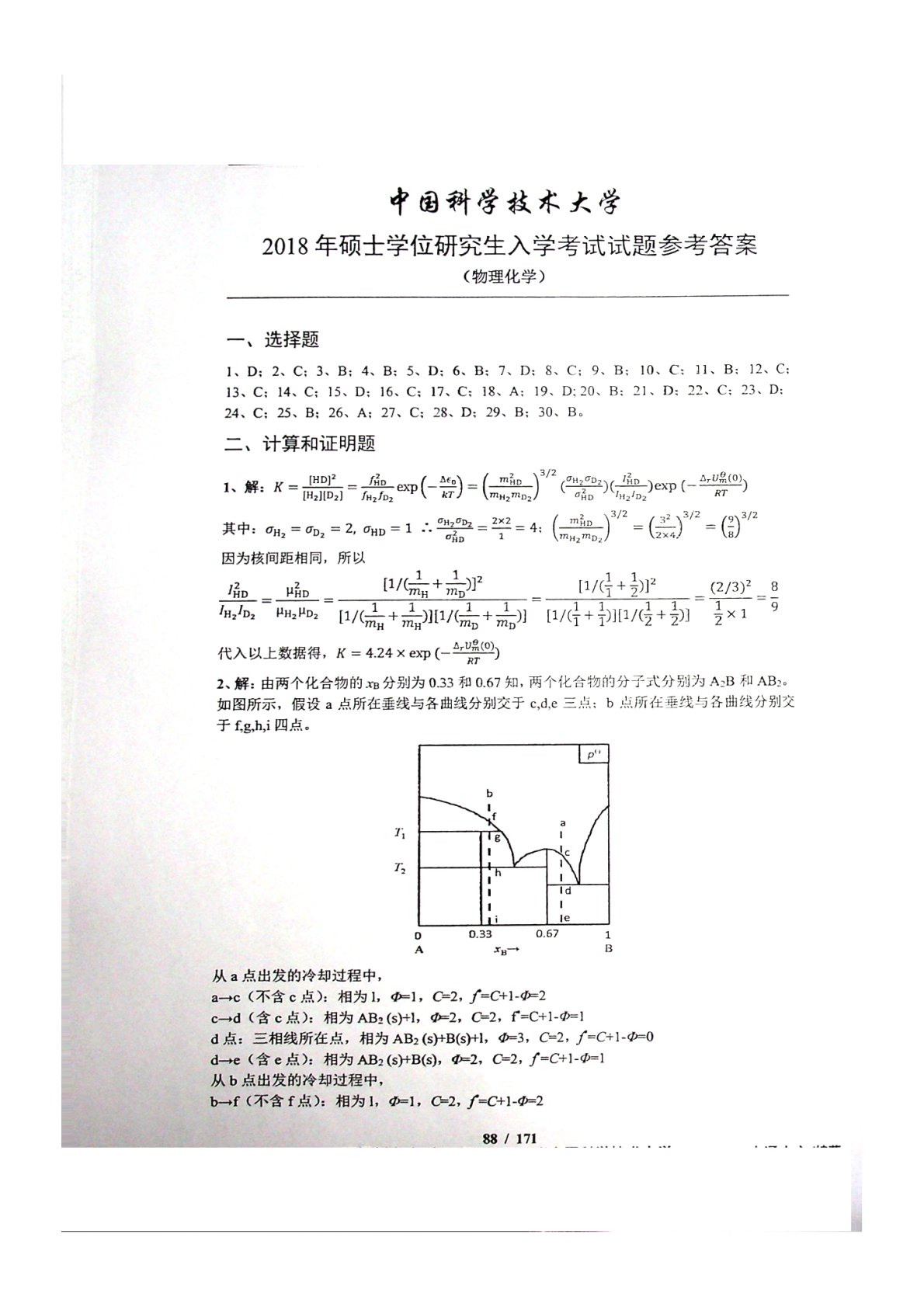中国科学技术大学621物理化学2018年真题答案2