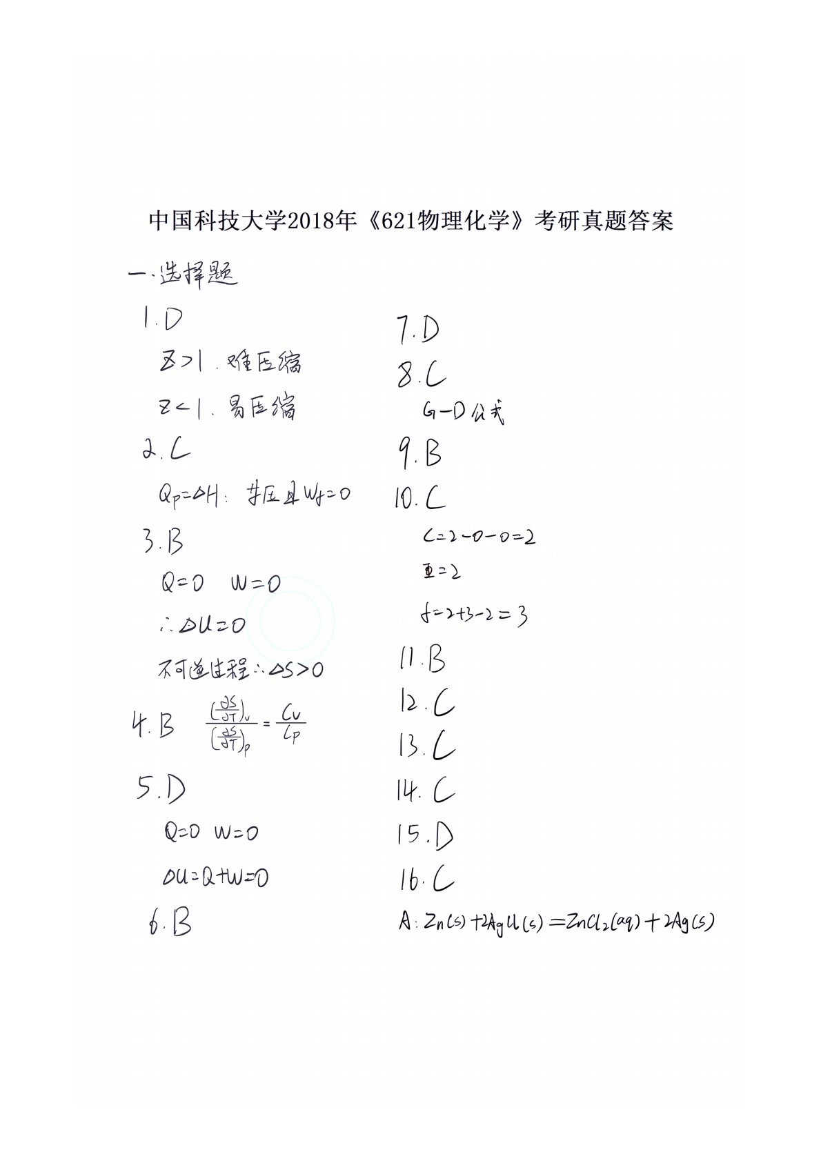 中国科学技术大学621物理化学2018年真题答案3