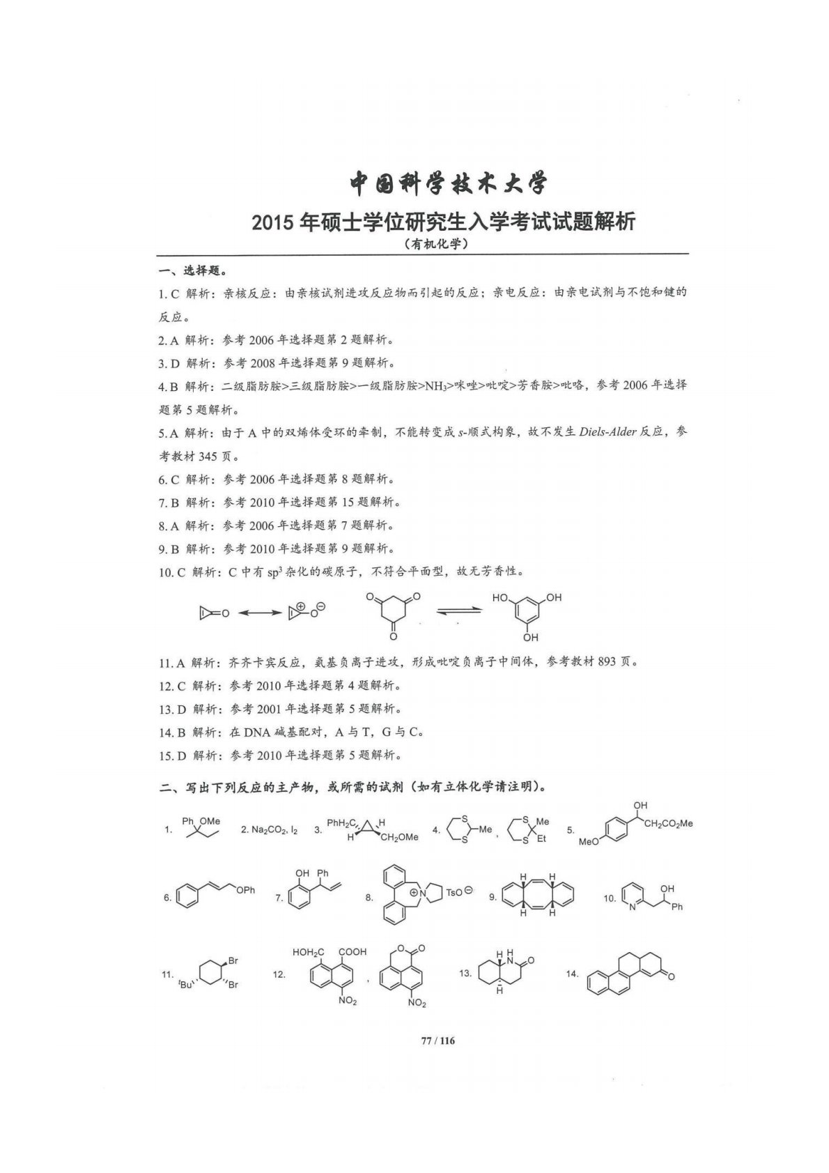 中国科学技术大学854有机化学2015年真题答案