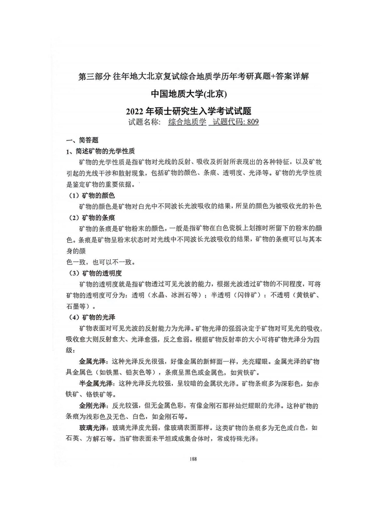 中国地质大学(北京)809综合地质学2022年真题答案