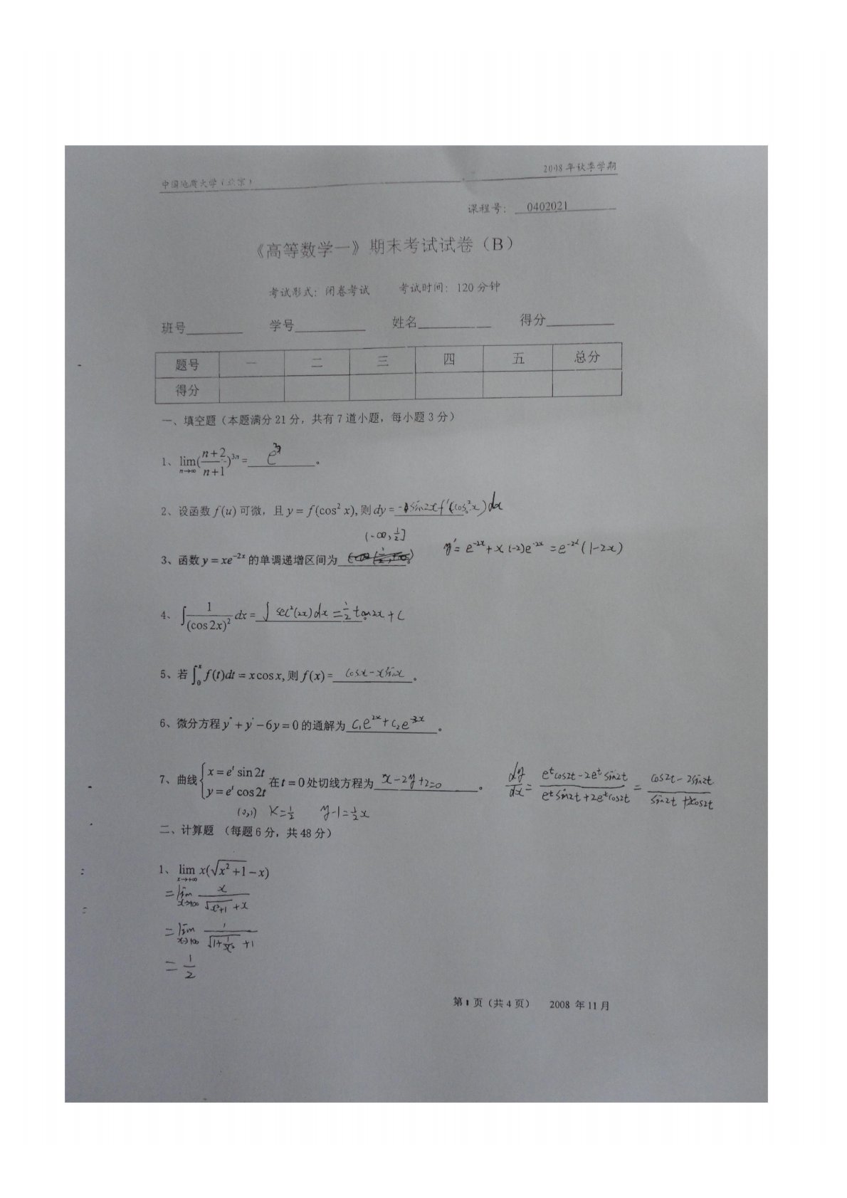 中国地质大学(北京)802高等代数2008年真题