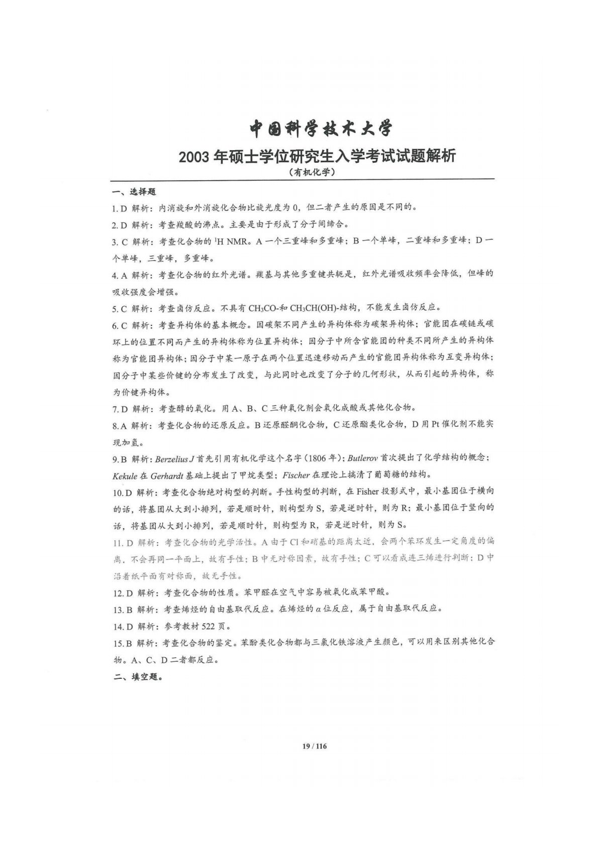 中国科学技术大学854有机化学2003年真题答案