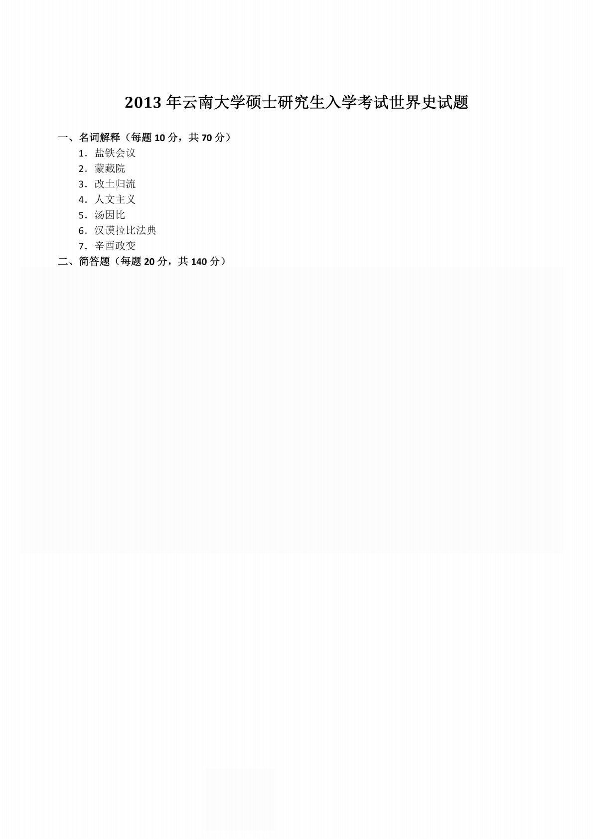 云南大学313历史学专业基础世界史2013年真题