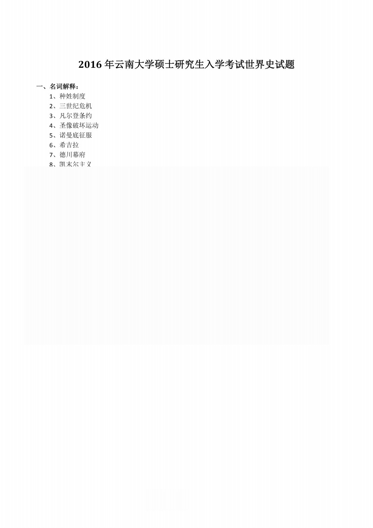 云南大学313历史学专业基础世界史2016年真题