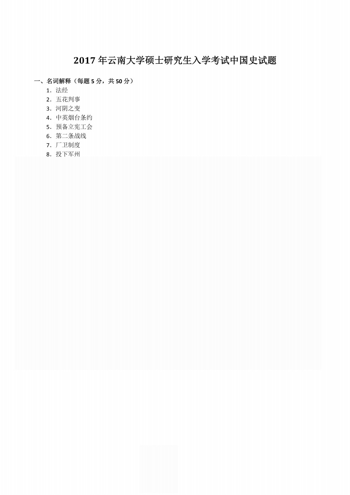 云南大学313历史学专业基础中国史2017年真题