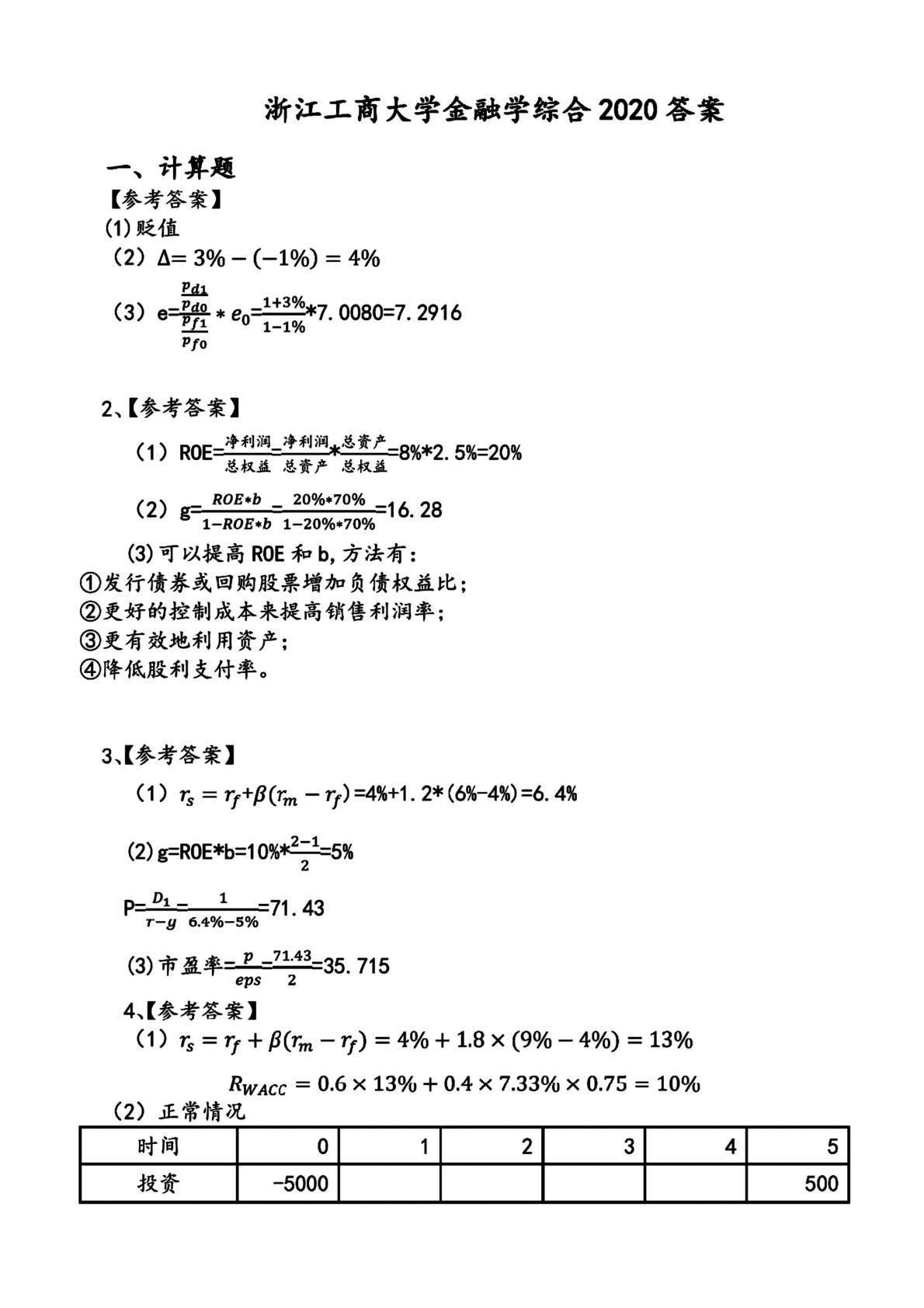 浙江工商大学2020年431金融学综合试题解析