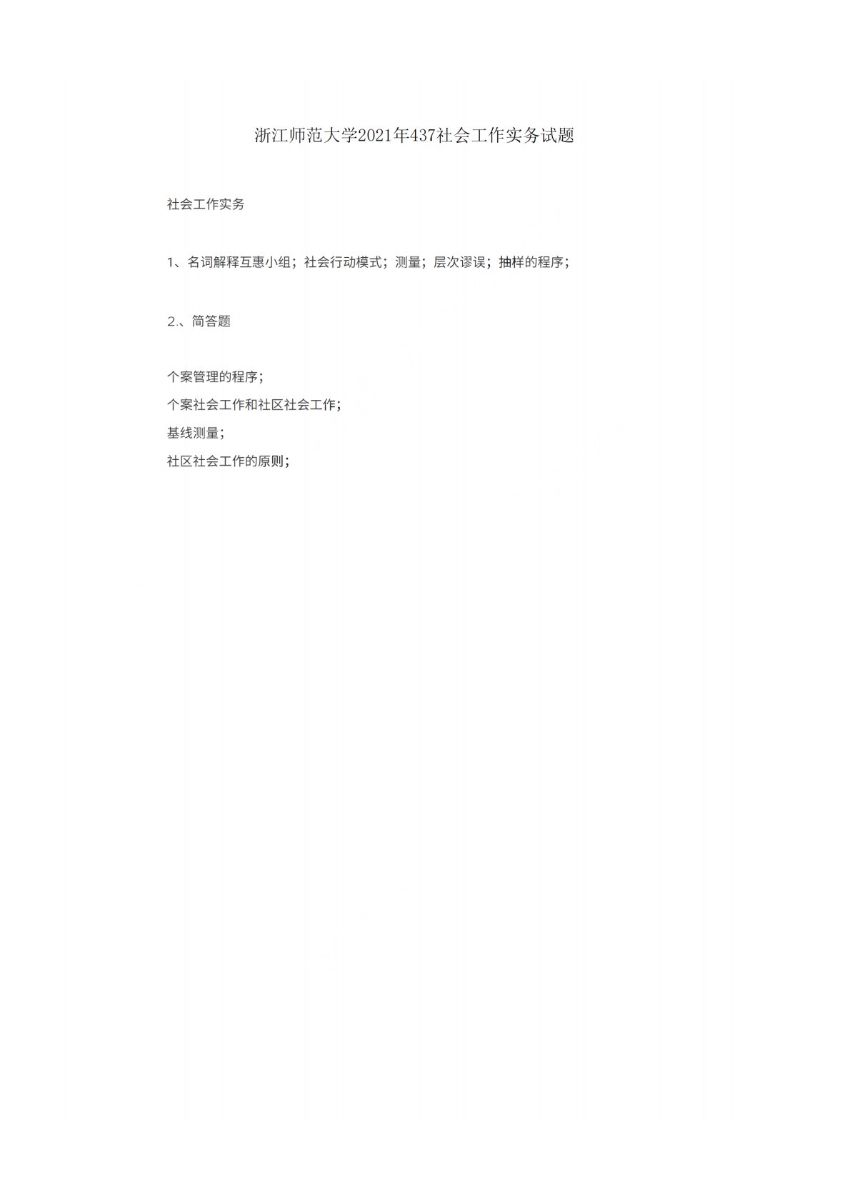 浙江师范大学437社会工作实务(专硕)2021年真题