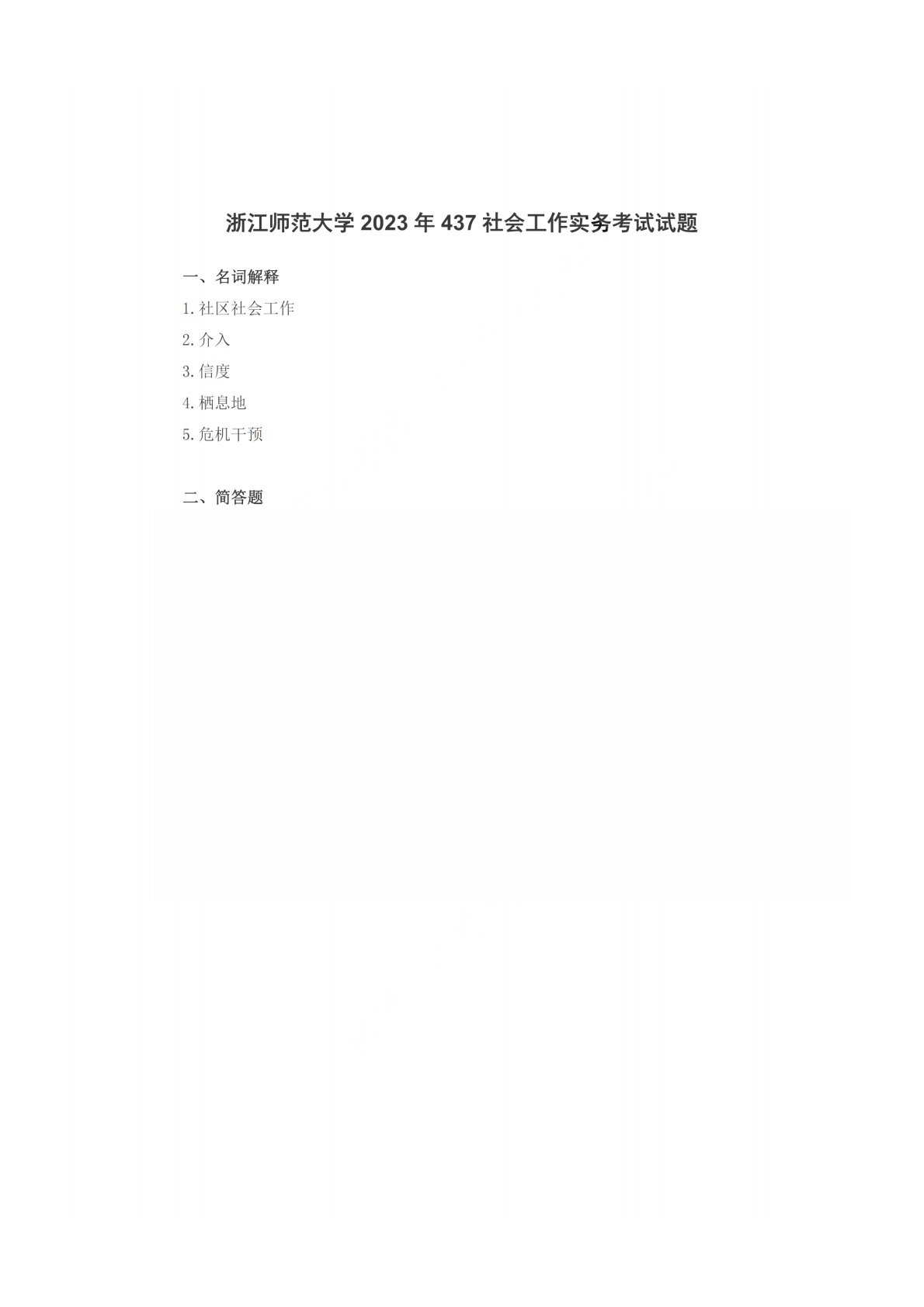 浙江师范大学437社会工作实务(专硕)2023年真题