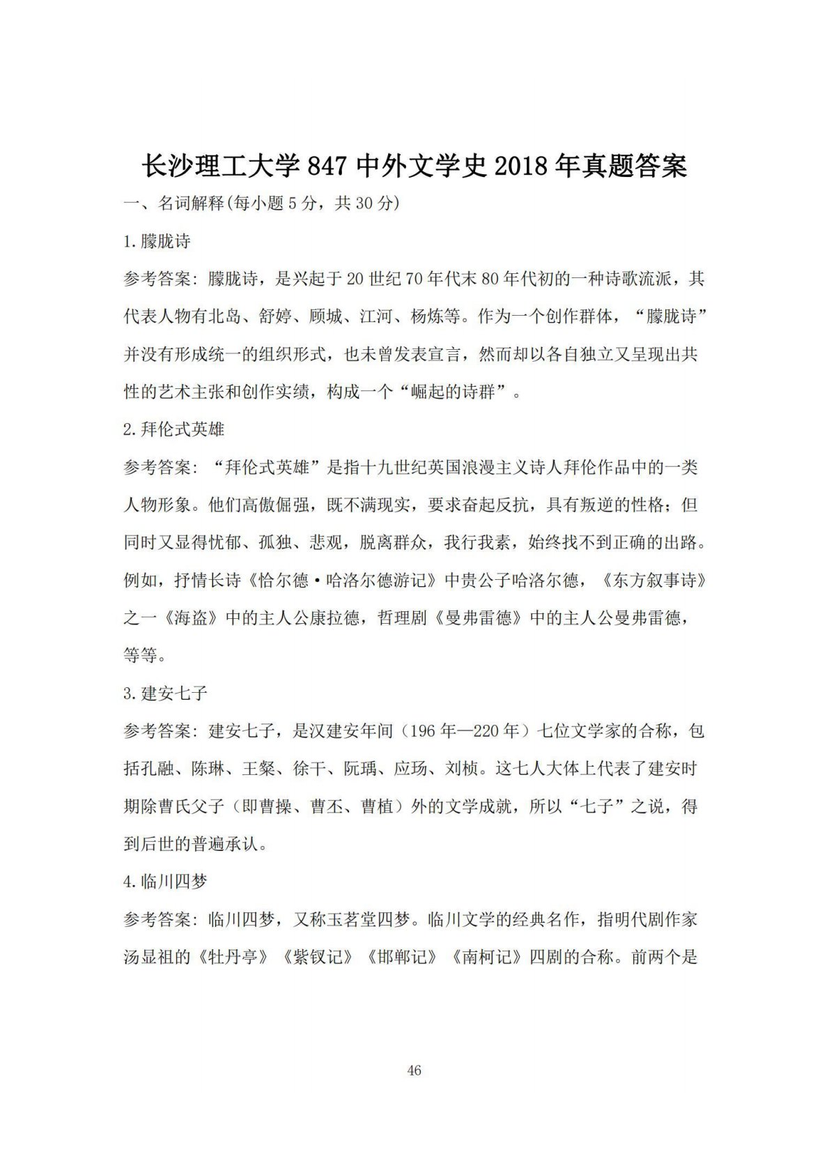 长沙理工大学807文学综合2018年真题答案