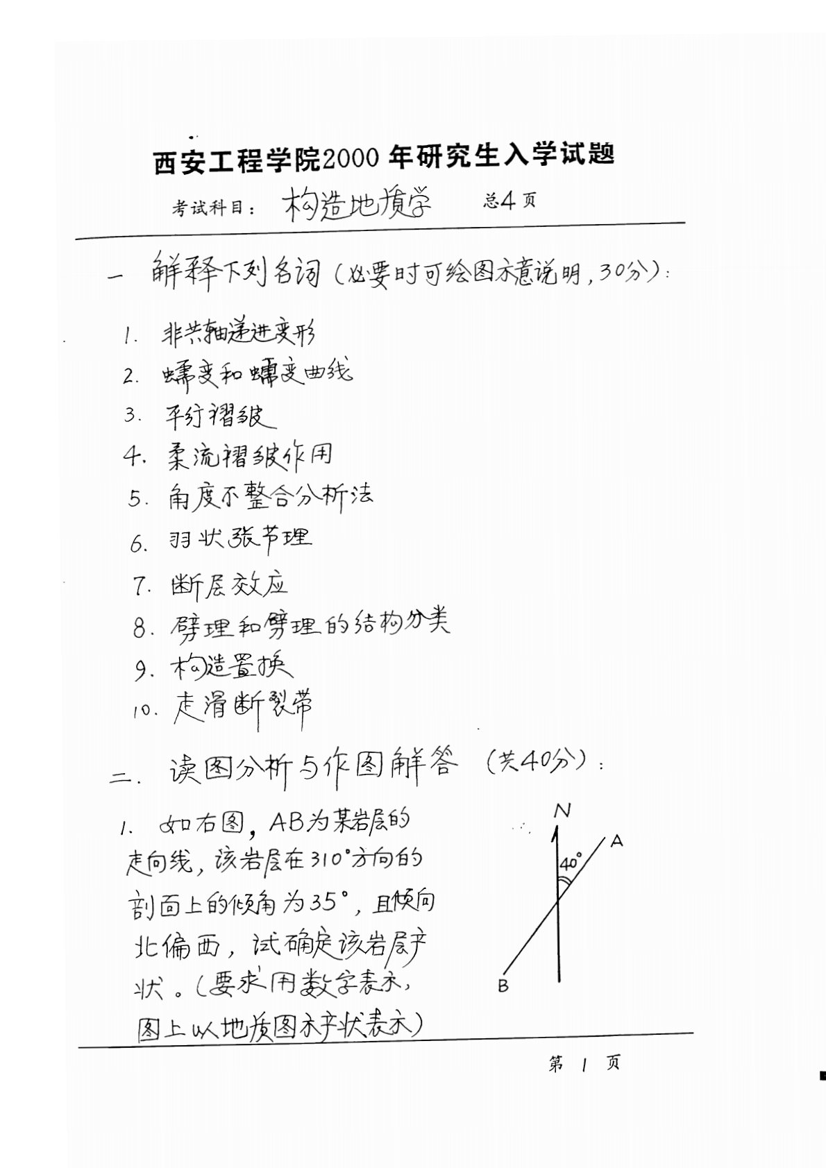 长安大学614构造地质学2000年真题手写版
