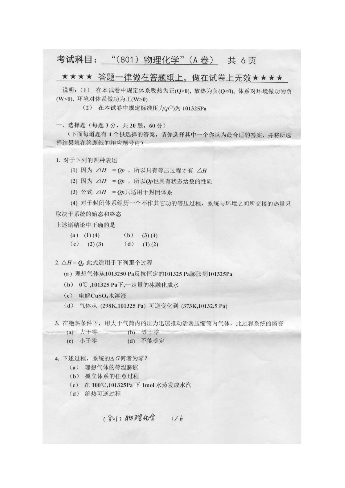 浙江工业大学801物理化学2012年真题