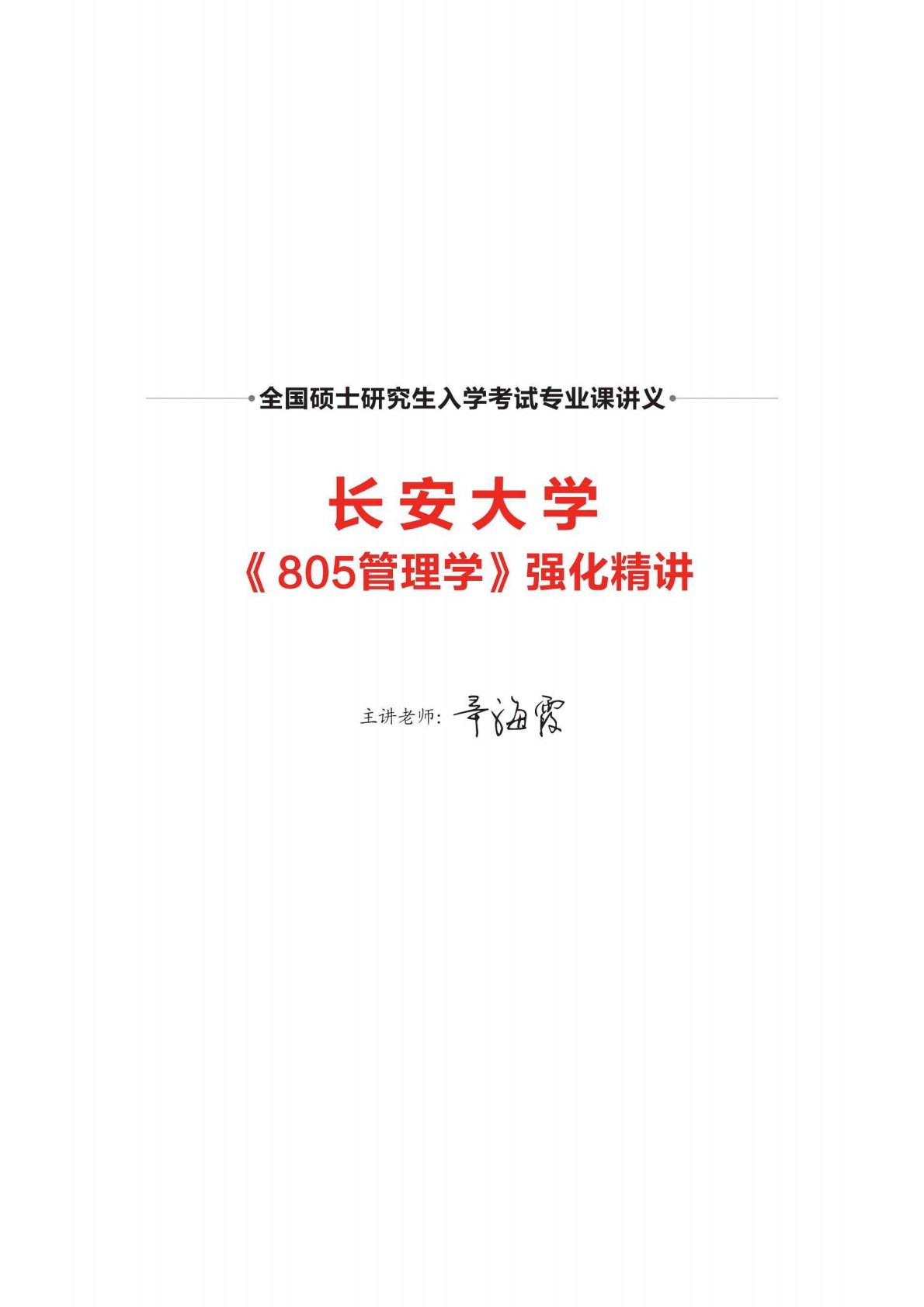 长安大学805管理学强化精讲讲义
