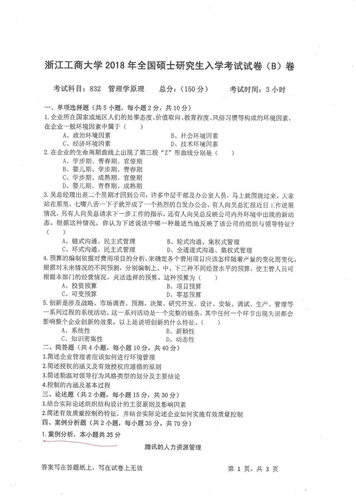 浙江工商大学832管理学原理2018年真题