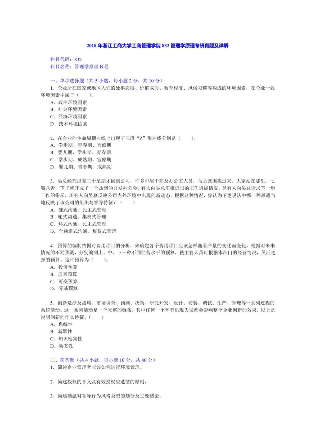 浙江工商大学832管理学原理2018年真题答案
