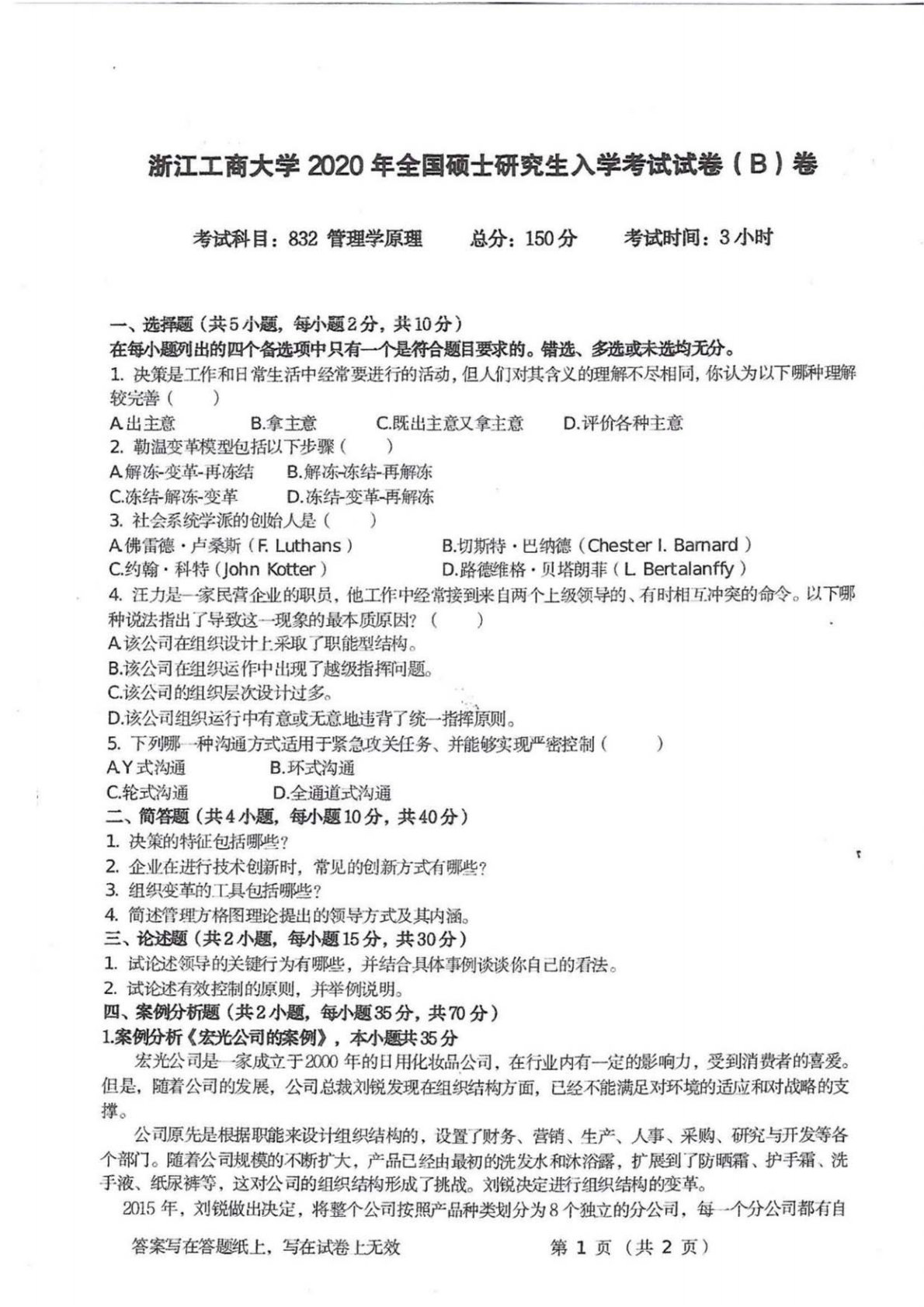 浙江工商大学832管理学原理2020年真题